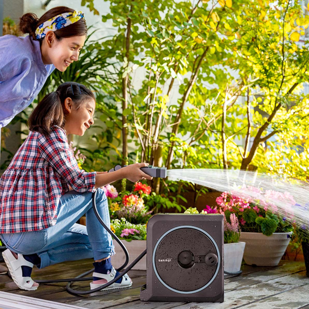 • Bao gồm: Hộp cuộn ống, vòi phun nước, núm vòi và đầu nối