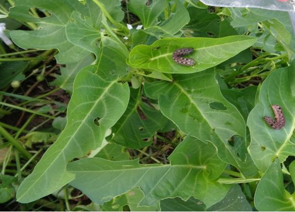 Đây là một trong những loài sâu gây hại trên rau phổ biến. Sâu non có kích thước nhỏ, màu xanh nhạt, thân phình to ở giữa và nhọn ở hai đầu. Chúng di chuyển rất linh hoạt, đặc biệt là ở mặt dưới lá.